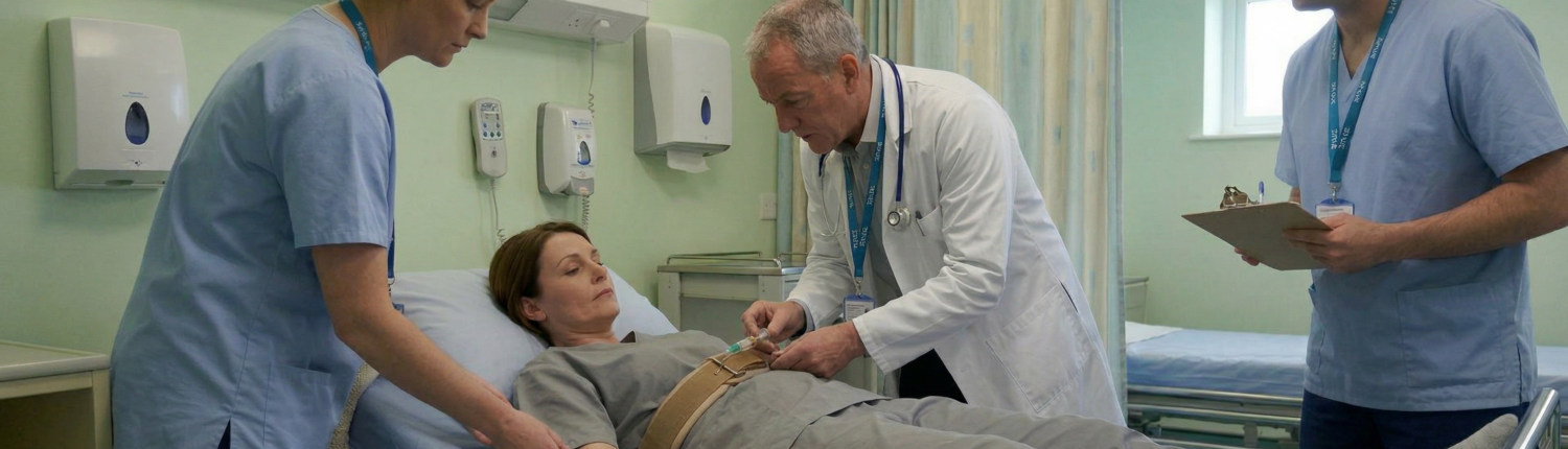 Eine Fixierung ist eine Notfallmaßnahme, die eingesetzt wird, wenn die konkrete Gefahr besteht, dass ein Patient sich oder andere Patienten gefährdet.